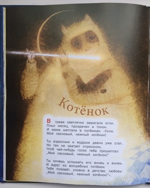 Нам эту книгу подарили, иллюстрации на любителя, конечно, но мне понравились. Другое дело, что я начала читать стихи и на некоторых просто зависла в каком-то ступоре, особенно там где мышку переехало поездом... Подумав, что читать такое сыну я точно не стану спрятала ее подальше, но однажды достала ее, когда протирала пыль на полочке, сын сразу увидел что-то новенькое, схватил, а там любимые кошки!!!))) пришлось читать) И в который раз убедилась, что какие-то блоки и комплексы живут только в нашей голове, дети воспринимают все иначе, не рисуя в своем воображении такие кровавые сцены как мы. Причем стихи то очень мелодичные, как песенки. Так что переборов себя достала и теперь читаем по просьбе сына.