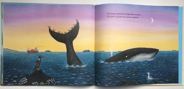 Читать будете явно не один раз. Единственное, Лёня сразу немного боялся хвоста, нарисован он полу погруженным в воду, тогда мы купили фигурку кита, посмотрели, осудили части тела и потом сынок наоборот на каждом развороте мне гордо начал сообщать, что "Это хвост!")))