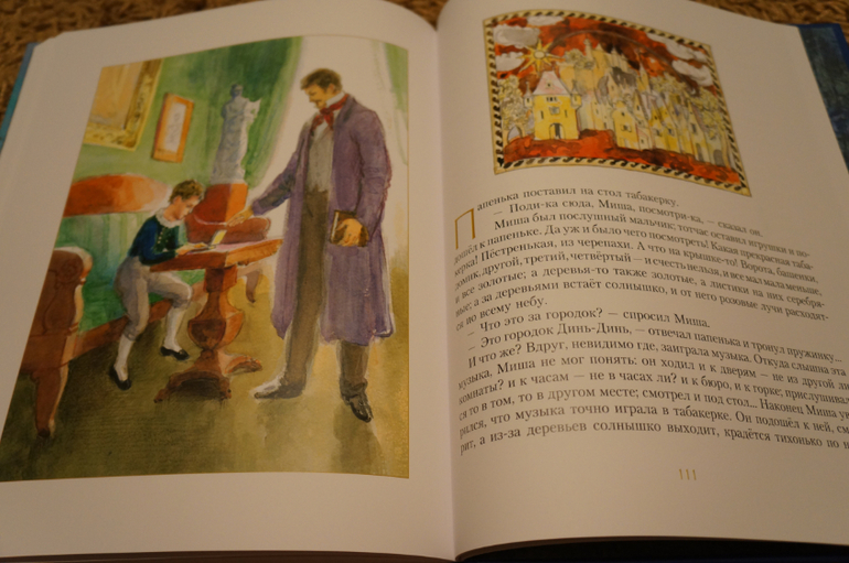 Книга достаточно яркая, много золотых красок. Но это благородное золото с