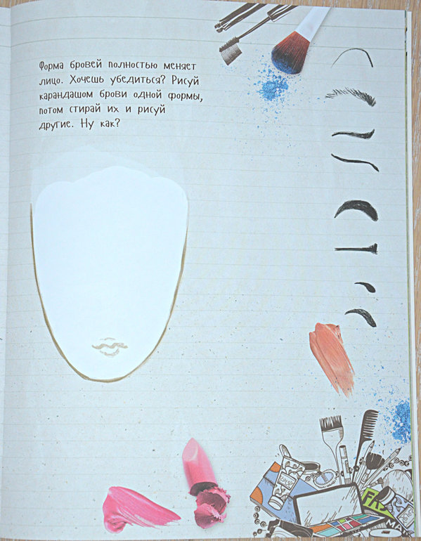 Их ждут необыкновенные интерактивные задания. Они смогут подобрать форму бровей и даже раскрасить ногти лаком прямо в тетради!