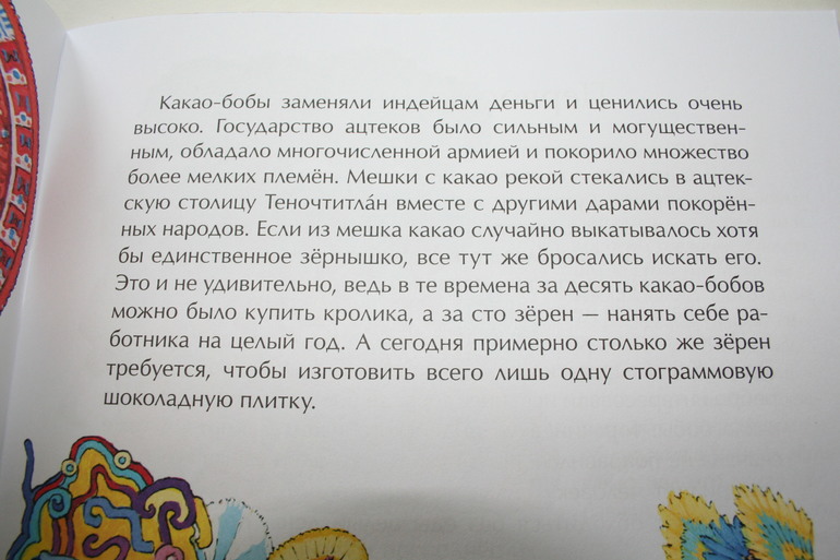 Дошкольникам и младшим школьникамВсе дети с удовольствием едят шоколад. А слушать историю про возникновение шоколада, узнать кто первым создал шоколадный напиток и разузнать все шоколадные тайны - не меньшее удовольствие. Шоколадный напиток, который готовили индейцы, был очень горьким и терпким. Поэтому, поначалу европейцы его не признавали. Прочитав эту , Вы узнаете в какой стране догадались класть сахар в шоколадный напиток, где впервые открылась первая шоколадная фабрика, в каком веке шоколад появился в России, как шоколадный напиток превратился в плитку и многое другое. Книга написана доступным, легким языком. Думаю, она будет интересна всем детям без исключения. Шрифт крупный, на непонятные детям слова дается расшифровка.