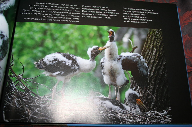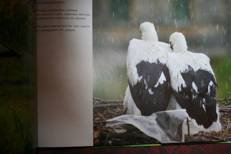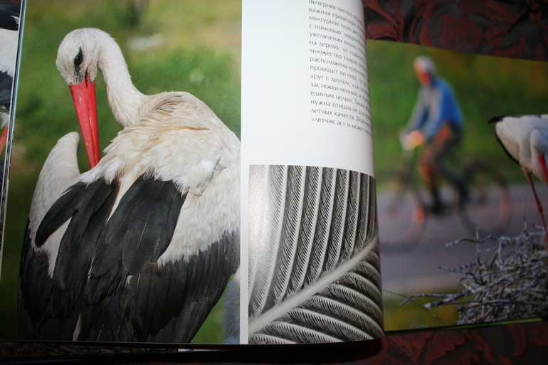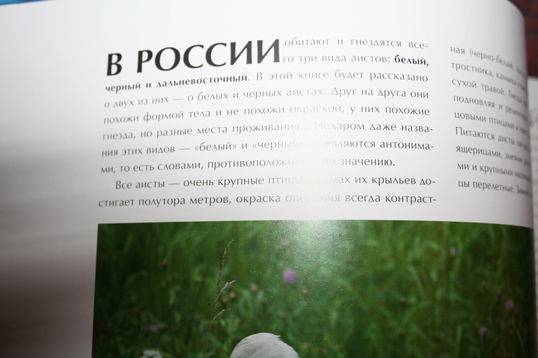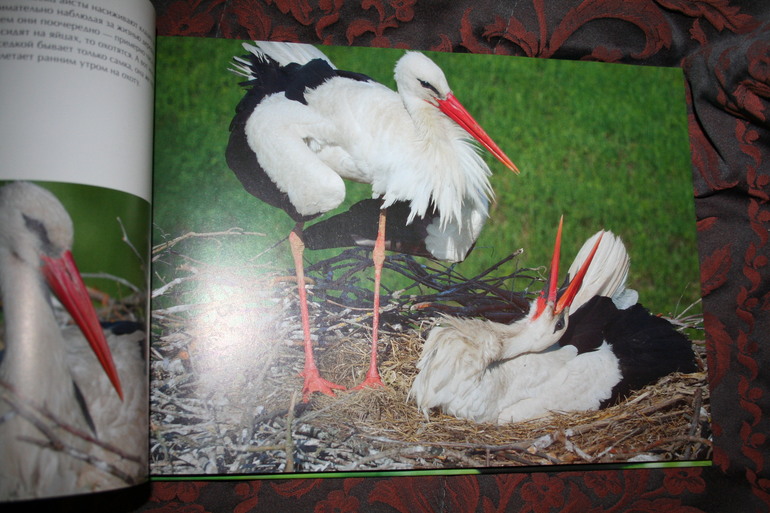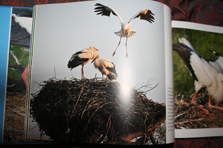 Средним и старшим школьникамДвухсторонний фотоальбом с комментариями Николая Шпиленка будет интересен и взрослым, и детям. Большая часть книги посвящена конечно же прекрасным и удивительным белым аистам, которые живут вблизи с человеком. Листая книгу, можно узнать, как живут белые аисты, чем они питаются, как выводят потомство, как приветствуют друг друга и многое другое. Николаю Шпиленку удалось запечатлеть редкие моменты, которые сложно увидеть невооруженным глазом. К примеру, теперь мы с детьми знаем, как аисты веселятся, когда их никто не видит - они катаются с крыш. Мне больше всего понравилосьфото с перетягиванием аистами змеи. Небольшая часть книги посвящена описаниючерных аистов, ведущих уединенный образ жизни. Шпиленок подробно рассказывает своим читателям о жизни этих ''отшельников'' и сравнивает их с белыми аистами. Альбом прекрасно подходит для семейного прочтения. Думаю, детям будет интересно узнать о жизни белых и черных аистов. Альбом нестандартного немного вытянутого формата в твердойматовой обложке (обложка такая же, как и у ''Камчатских соседей'' от Самоката). Фото высокого качества. Не темные и не высветленные. Текст не бликует.