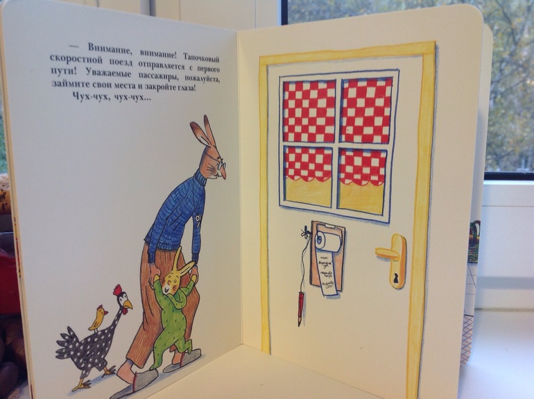 Когда у нас появилась эта книга ( где-то в 1,3), уже после первого вечернего прочтения Василиса потребовала ехать на тапочковом поезде к себе в спаленку😊 и так мы ездили не один месяц 😋 едет ту-тукает и чух-чухает)