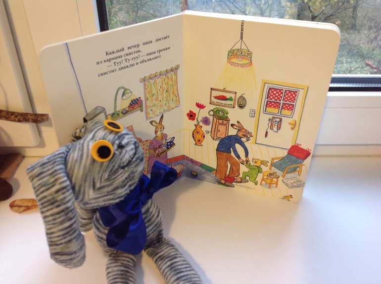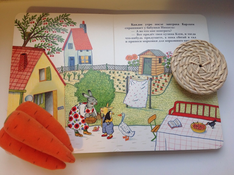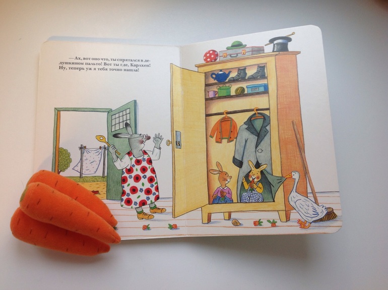 Доча очень любит искать кролика и когда читаем говорит де? Де? И ку- кукает)