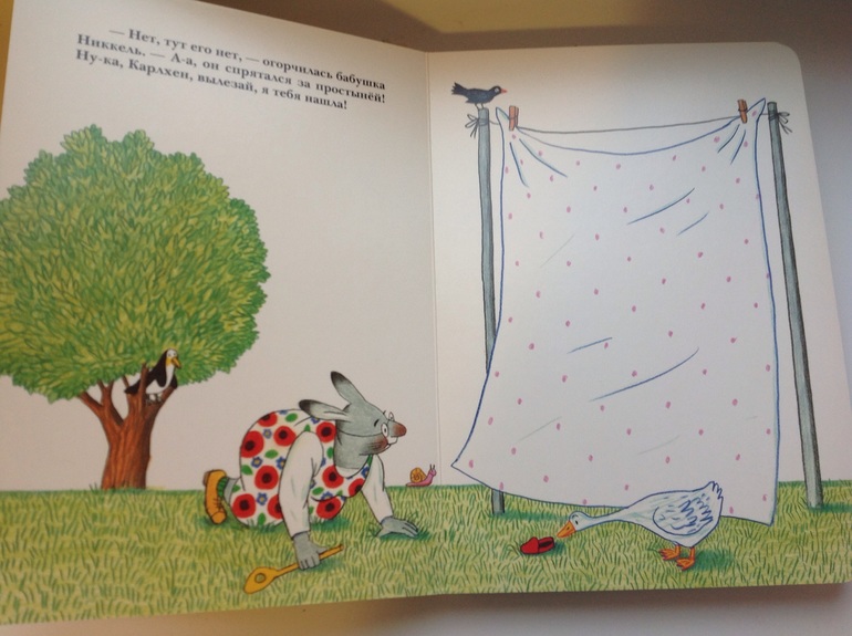 В книге простой сюжет который понятен малышам и много мелких деталий для разглядывания. Доча тыкает пальчиком на каждый предмет и говорит вопросительно а.. ??