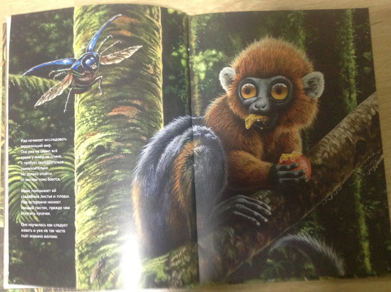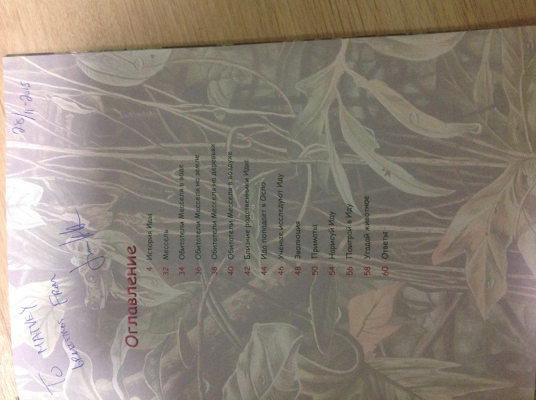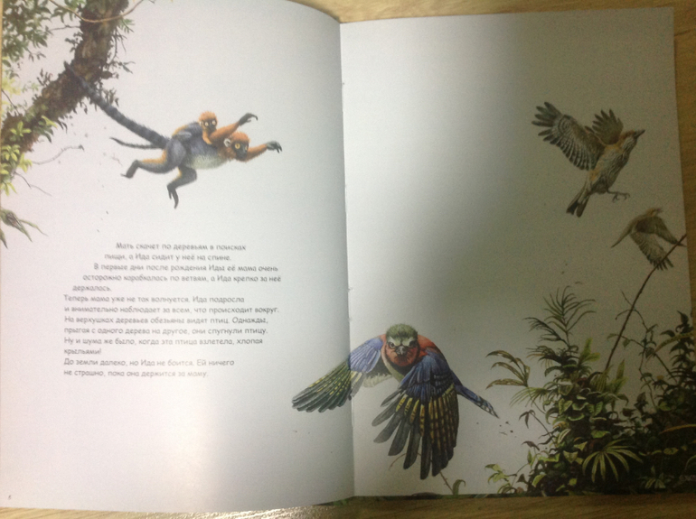 Теперь о книге. Книга входит в новую серию издательства "Пешком в историю" "Идем в музей". Великолепно сохранившийся скелет Иды был обнаружен автором в 1982 году во время раскопок в Германии на озере Месселя, которое образовалось на месте кратера потухшего вулкана. Сына больше всего взволновал тот факт, что ученые до сих пор так и не договорились, к какому из видов относить принадлежность Иды - лемуров или обезьян. По зубам Иды был сделан вывод, что она представляет собой новый вид, ранее неизвестный науке. Однако на протяжении всей книги автор называет её маленькой обезьянкой. Книга состоит из двух частей - повествовательной и научно-популярной. Первая написана доступным, я бы даже сказала, несколько примитивным языком. Учёный упомянул, что текст был составлен им с помощью журналиста, "умеющего писать для детей". Обращает внимание преобладание простых предложений, а также некоторая лексическая бедность языка. Напоминает немного жанр фоторепортажа, в том числе и за счёт богатых иллюстраций, качество которых великолепное. Достаточно ярко описаны подробности жизни обитателей тропического леса периода 47 миллионов лет назад. Вторая часть книги представляет собой энциклопедию с заданиями в игровой форме. Факты интересные и яркие, читается легко, на одном дыхании. Сын прочитал за один вечер. Книга ему понравилась. Возрастная аудитория, на мой взгляд, смешанная, хотя читать книгу дошкольникам я бы не рекомендовала. Жизнь обезьянки наполнена страданиями и болью, история заканчивается гибелью. Обезьянку очень жалко.. Скорее всего больше подходит ученикам начальной школы. Мне книга понравилась, жалею, что не взяла на подарки. Выкладываю несколько фото, если нужно полностью - пишите, сделаю больше. Либо можно посмотреть в Лабиринте, книга есть в наличии.