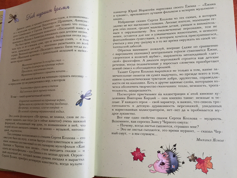 "Талант Сергея Козлова выразился не только в том, какие замечательные сюжеты он сумел выдумать, но прежде всего в том, каким гуманистическим чувством добра, дружества, справедливости он их наполнил. Есть и другие важные слова, которыми хочется обозначить творчество сказочника: тепло, нежность, трогательность, акварельность".
