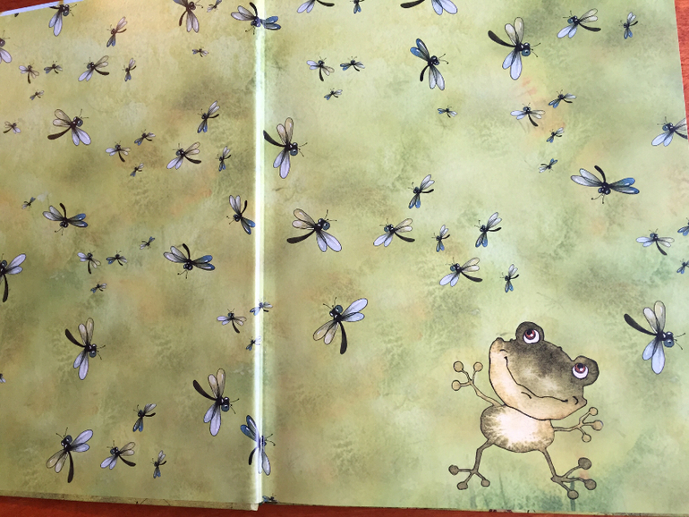 Форзац встречает нас веселым лягушонком и стрекозами на фоне цвета сочной травы (на фото не получается передать)