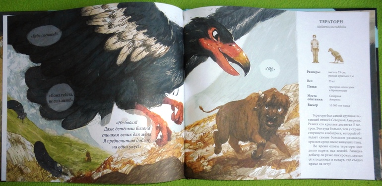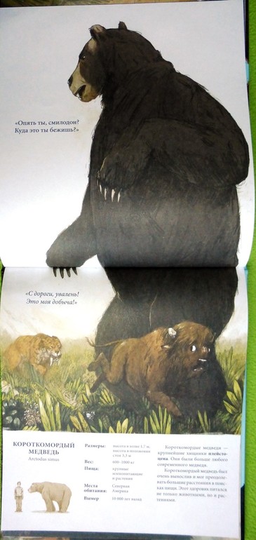 Шерстистый носорог, короткомордый медведь, саблезубый тигр, предок муравьедов глиптодон, огромная птица тераторн и еще много невероятных встреч ждут нас в этой книге.