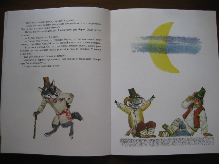 С пересказами Маргариты Долотцевой раньше вроде бы не приходилось встречаться ("Крошка Енот" у нас не в ее пересказе), но здесь понравился: без сложных оборотов, без длиннот, без словечек, требующих подстрочных примечаний, коротко, но емко и даже где-то с юмором :) Вот, например, сказка, давшая название всему сборнику, - "Лиса и тетерев":
