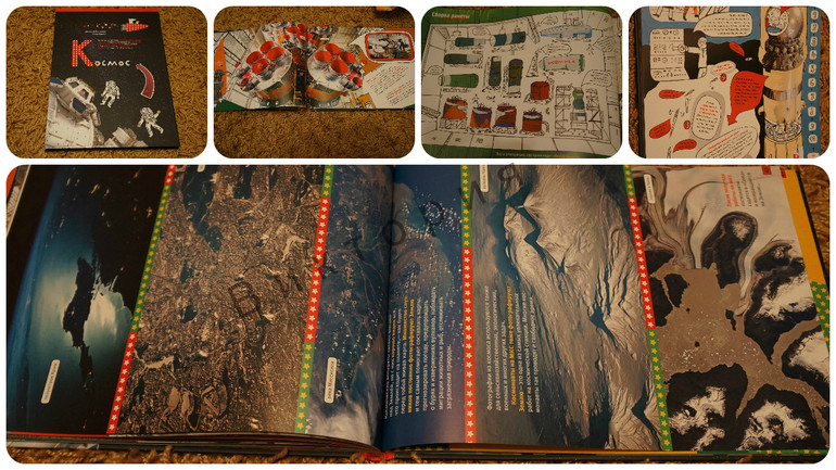 Интересное сочетание рисунков с настоящими фотографиями. Фотографии создают впечатление масштабности, ощущение реальности и наглядности, а иллюстрации придают легкость, понятность и притягивают детский взгляд.