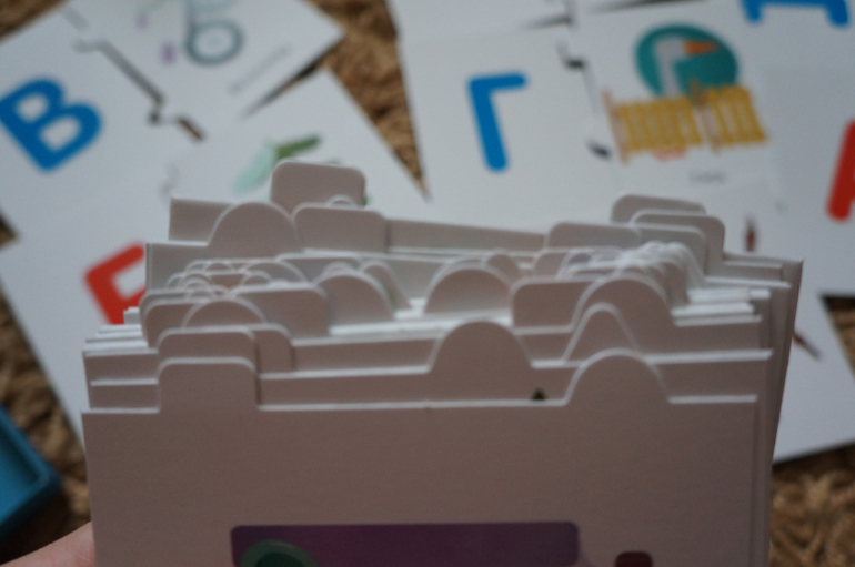 Моя младшая дочь с удовольствием играет с этими карточками и пытается запоминать буквы. Хотя раньше интереса к изучению букв не было, не смотря на обилие разных пособий, азбук и пазлов на данную тематику.