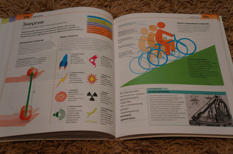 В специально выделенном блоке есть примеры из реальной жизни. Ребенку это поможет разобраться в сложных науках и понять их значимость. Ведь без науки мы даже не можем разогреть пищу.