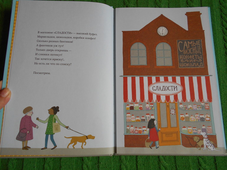 Каждый разворот это новый магазин - булочная, фарфор, сладости, магазин игрушек, музыкальных инструментов, зоомагазин, цветочная лавка.