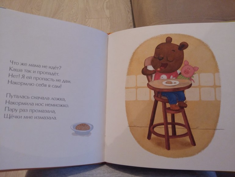 История про медвежонка Федю) милая и простая. История о пользе кушать кашу и делать эту самому. Мораль есть! В стихотворной форме.