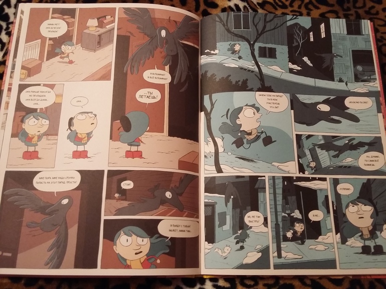 - Одноклассники кидают камни в птиц, а Хильда жалеет сбитую птицу. И даже рискуя не найти свой дом, остается и помогает раненому ворону, а не убегает с одноклассниками.