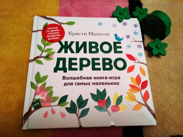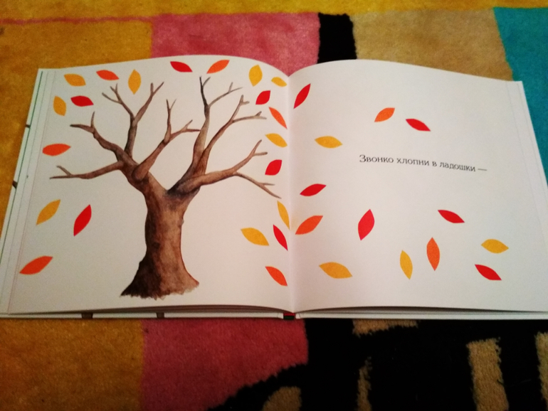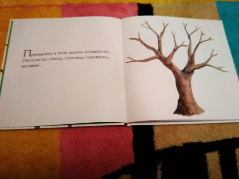 Мне книга понравилась. Если бы у меня был малыш 2-3 лет, мы бы ним еще заодно обсудили более развернуто смежные темы- что происходит в каждое время года с деревьями. Но так как мои дети постарше и это уже знаем, то мы просто с удовольствием играли :)