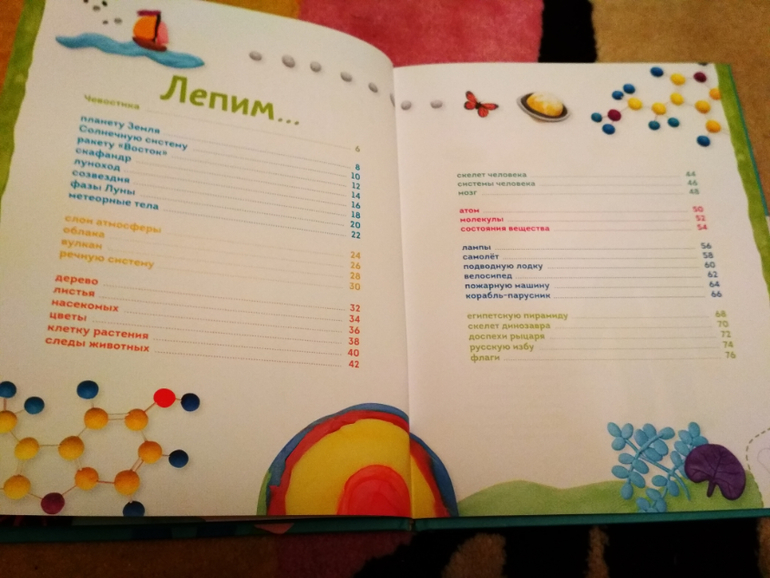 Авторы поясняют что это не учебник по лепке, это путеводитель по Вселенной: от атома до гигантских созвездий, от цветка до насекомых, от колеса до пожарной машины. Книга содержит 40 мастер-классов с помощью которых ребенок сможет уствоить устройство окружающего мира.