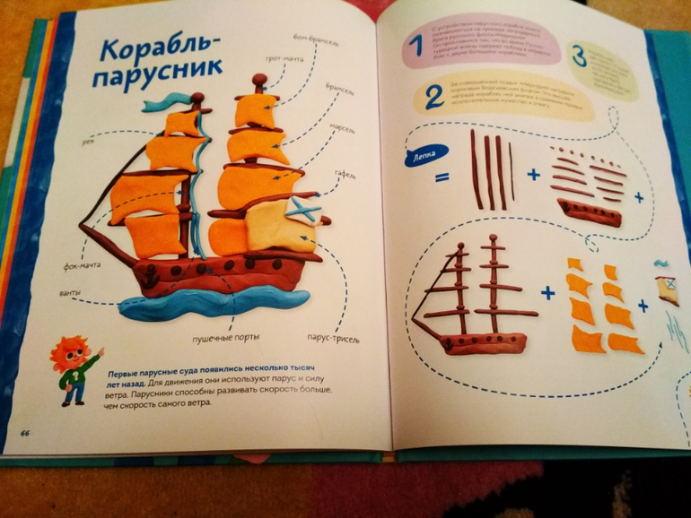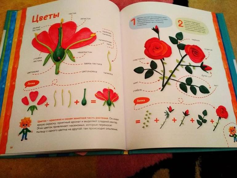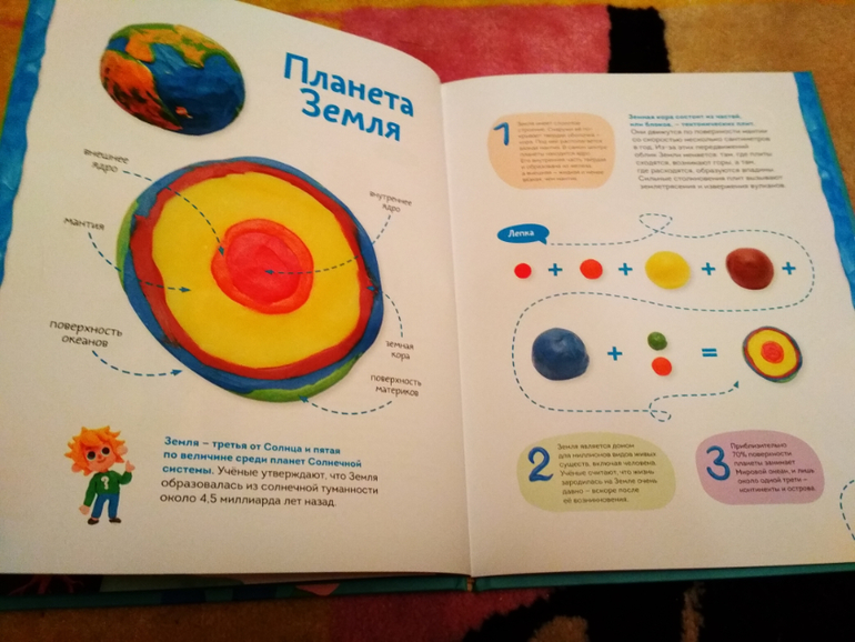 Эта книга совершенно другая. Она дает ребенку не только теоретические знания, но и побуждает к действию и учит как можно новые знания визуализировать с помощью пластиллина. Это очень интересная техника подачи информации, когда ребенок одновременно запоминает информацию и на слух, и зрительно, и воплощая все самостоятельно.