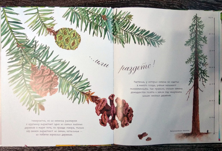 Любимый разворот сына - он восхищен высотой секвои по отношению к росту человека! После знакомства и разбора именно этой иллюстрации у сына появился интерес к деревьям на улице. Особенно на хвойные. Но у простые не обходит стороной! А это какое? А это? А почему плакучая ива плачет? Она плакса? Почему она плачет не постоянно? (Кстати, этот вопрос мы так и не разобрали, про слезы плакучей ивы, надо исправиться!)