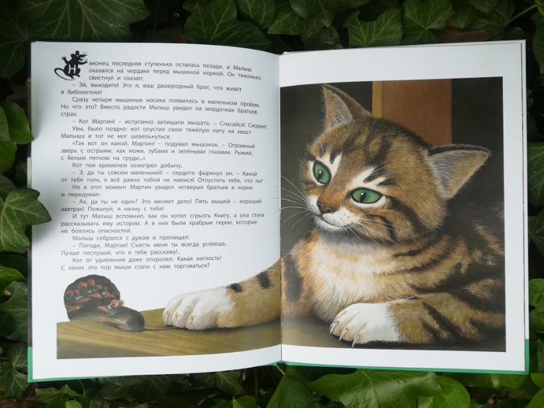 И сразу загадка для любопытного мышонка - в доме живет страшный и опасный Мартин. Кто он и как выглядит? Малышу предстоит познакомится с ним. Но до этого будет не менее значимое в жизни мышонка знакомство с Говорящей книгой, черные буквы которой Малыш сначала принял за букашек и даже хотел съесть, которая научила его грамоте и открыла перед ним удивительный мир чтения. Она рассказала ему о морях и океанах, об отважных путешественниках, которые открывали новые земли, о пиратах, ищущих сокровища, о дремучих лесах и драконах, о принцессах и рыцарях.