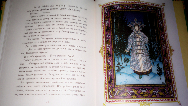 Ну, а образы, созданные художником, великолепны. Русские костюмы, природа, милые лица добрых героев - все это надо рассматривать и обсуждать с ребёнком.