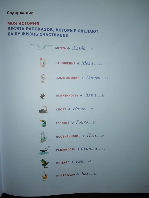 Вот так выглядит содержание книги. Самое интересное, что на развороте с каждым рассказом присутствует фраза "моя история" и в содержании можно по вертикали прочитать эту же фразу. Первый рассказ про мечту-это буква "м", второй про отношения-это "о" и так далее...