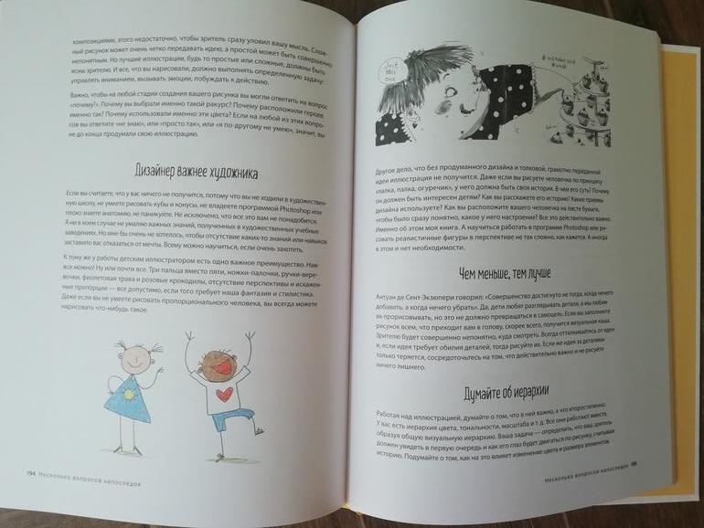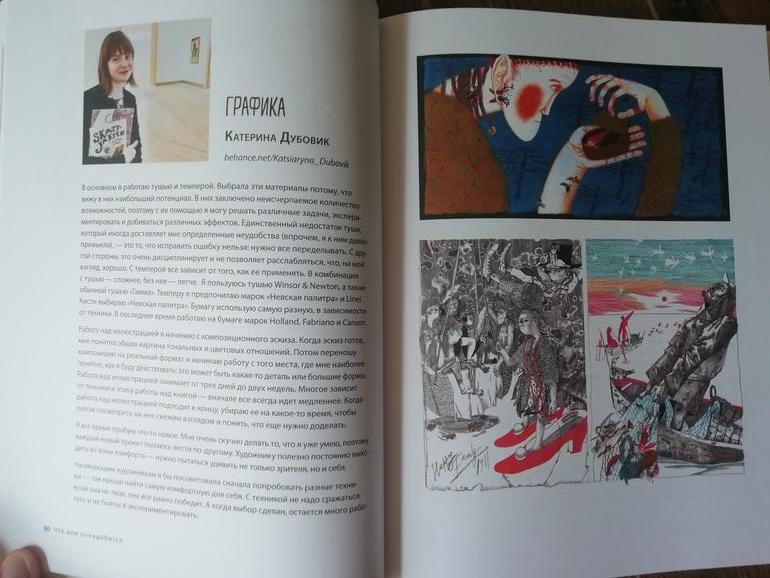 Разумеется, любое начинание требует решимости и борьбы со своими страхами и неуверенность. Для мотивации в книге есть рассказы о разных иллюстраторах с примерами их рисунков.