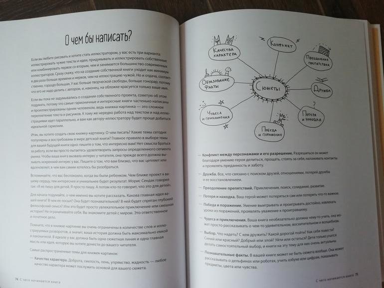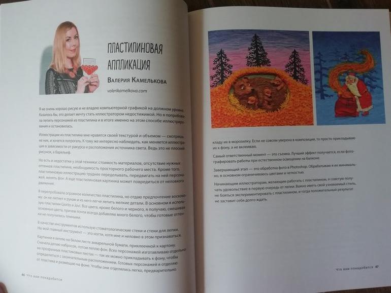 В книге много фотографий и иллюстраций, информация о том что нужно для того, чтобы стать иллюстратором, есть советы по тому, как придумать свой сюжет, как создать своего персонажа.
