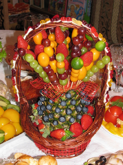 У меня сестра делает в ананасе букеты. Правда, не вырезает фрукты, а целиково.