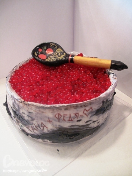 в роли бересты - тонкий бисквит, обьянутый белой мастикой. черные трещины- аппликация из черной мастики- сверху все затонировано. такой вариант очень экономичен в плане раходов мастики и мороки с выравниванием))) весь торт 2 часа ( правда ложку заранее лепила, чтоб краска высохнуть успела)