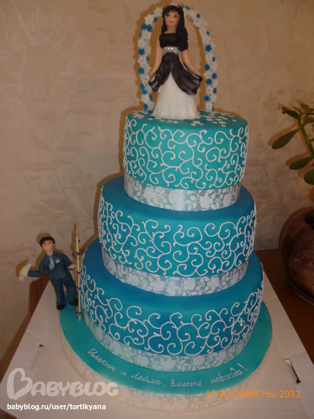 Мне были даны 2 фото тортов и фото платья...с одного стиль торта, с другого жениха и невесту...