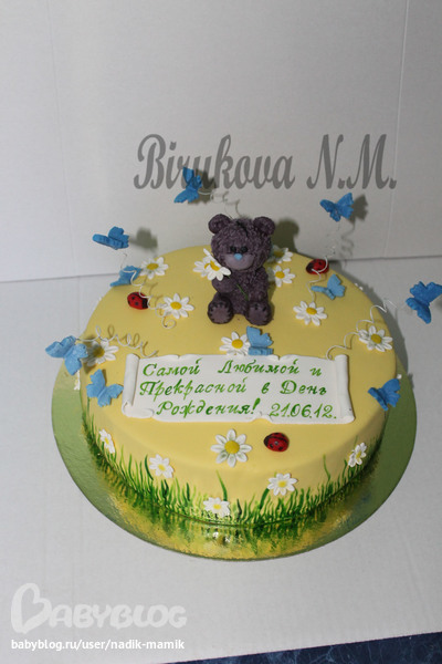 Нежненький тортик!!! Прелесть!!!! Очень понравилось, как нарисована травка!!!