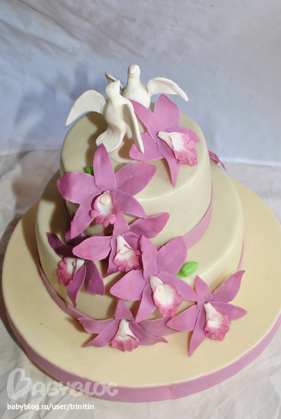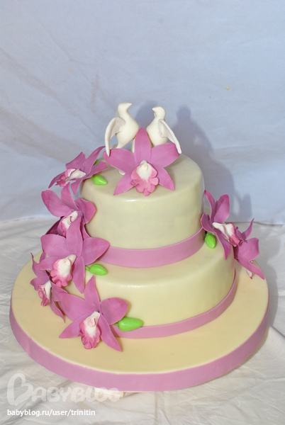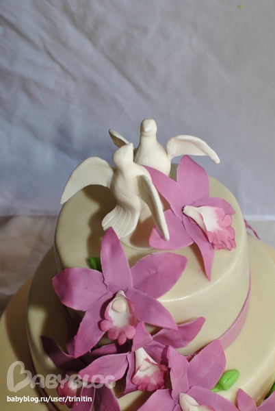 Торты свадебныеЗаказали тортик с тайскими орхидеями, ну не даются они мне(( Не получаются естественными. Наверное потому что живые вижу очень редко и не могу запомнить(((