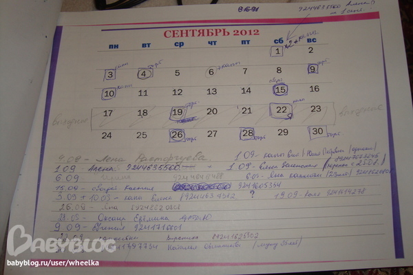 вот так быть не должно)))) но у меня август еще хуже заполнен))поэтому показываю сентябрь))))да и доча карандаш украла)))