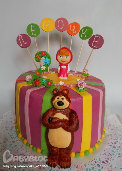Мишку и Машку сами лепили? прелесть какие красивые!!! Тортик в целом супер получился!!!