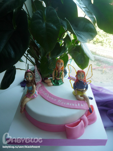 Мне сначала показалось что посередине торта огромный цветок растет!)))) Молодец, Винкс хорошо получились!