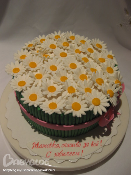 Торты для женщинКлассический тортик с ромашками,но у меня он первый.Вес-2,5.Ванильный шифоновый бисквит,маскарпоне со сливками и персиками.