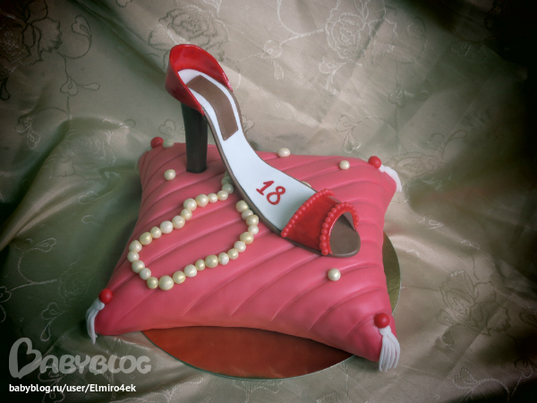 Под тортиком обычная картонная подложка. Они продаются во всех интернет-магазинах, где можно купить инструменты для работы с мастикой, саму мастику и тому подобное. Я покупаю или в Невкусно.ру или в Баробелл. Подушка - это квадратные бисквиты, обрезанные по форме подушки. Бисквит промазывается кремом, ему дается время для того, чтобы он подзастыл в холодильнике и потом вы его обрезаете так, как вам надо. Сверху только мастика. Здесь айсинга нет.