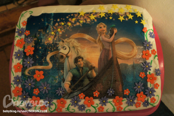 Катюш,очень симпатичный тортк! Уже видела его на Одноклассниках))) Кать,а почему долго приклеивалась?  На что? Я вот тоже у Оксаны заказала,предстоит тоже сделать с фото.Она вроде говорит,проблем не должно быть. В чем трудность была? У тебя плотная рисoвая или сахарная картинка? Что-то боюсь я уже за это браться...