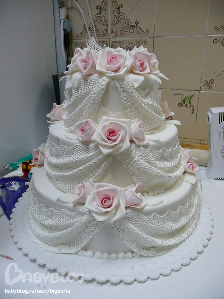 Торты свадебныеТакой уже далала один раз, но как всегда тогда забыла сфоткать)) Посчастливилось сделать ещё такой же. Ивините за мой бардак, я только что дделала торт, сфоткала в темпе, и понесла к машине. Вес 8 кг.