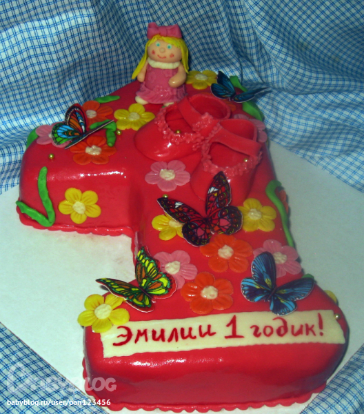 Ну про единичку даже не знаю что сказать..... Форма ужасная(( Мастика блестит - это на мой взгляд некрасиво(( И потом не понятно как-то оформлена... цветочки-бабочки.... все в одной куче... Это уровень не заказного, а любительского торта... для своих так скажем..