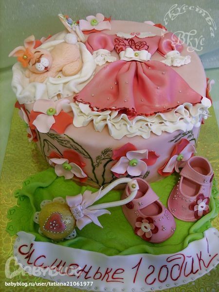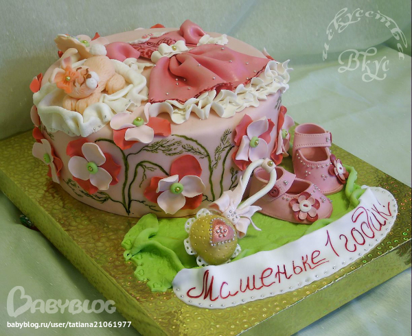 Тортик на годик с пинетками.