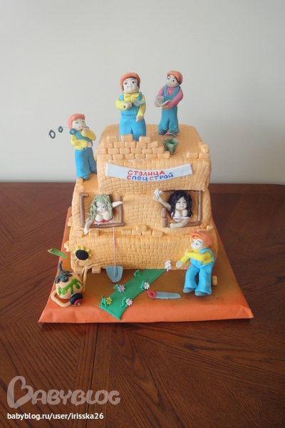 Торты корпоративныеСтроительная компания заказала на день тсроителей,вес 10 кг,первый ярус медовик,второй банановый с шоколадным суфле и третий черемуховый