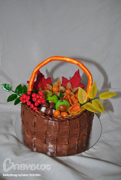 Корзинка - вес 1,8 кг. Ванильный бисквит, сливочно-сметанный крем, банан и киви.