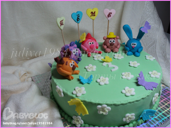 Торты детскиеЗа идею взято фота из интернета, с внесением небольших коррективов клиенткой. Вес 3,2 кг. Внутри панчо со сметанным кремом грецким орехом и киви.