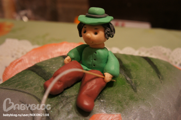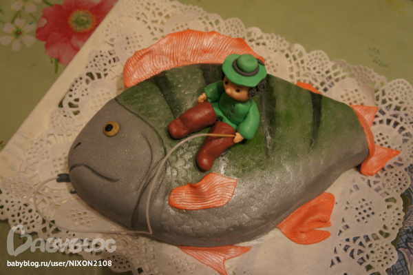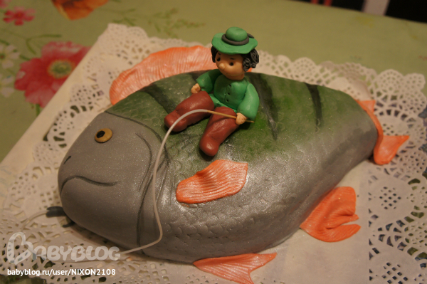 Торты для мужчинКак то так получилась моя рыбка и рыбак. Вес 2,2 кг. Бисквит классический, крем с маскарпоне, клубника.
