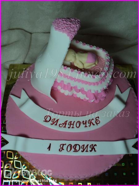 Торты детскиеПопросили повторить мой тортик, который делала на 6 месяцев для моей доченьки. Менять ничего не пожелали, только цвет попросили по ярче.