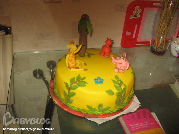 я обычно торты сильно критикую (девочки знают), но тут все очень не плохо ;) свечка, наверное, вообще дополняла картину и все было вполне гармонично. пальму бы пораскидестей, ну, да это мелочи! поздравляю с симпатичныи тортиком!!!