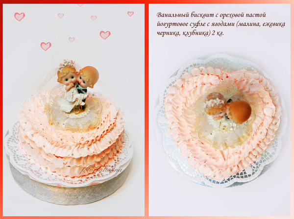 ванильный бисквит с ореховой пастой, йогуртовое суфле с ягодным хороводом (клубника, земляника, черника, ежевика, малина) 2 кг. крем белково-заварной!